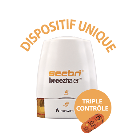 • Dispositif unique Breezhaler® qui permet un triple contrôle de la prise 2,4